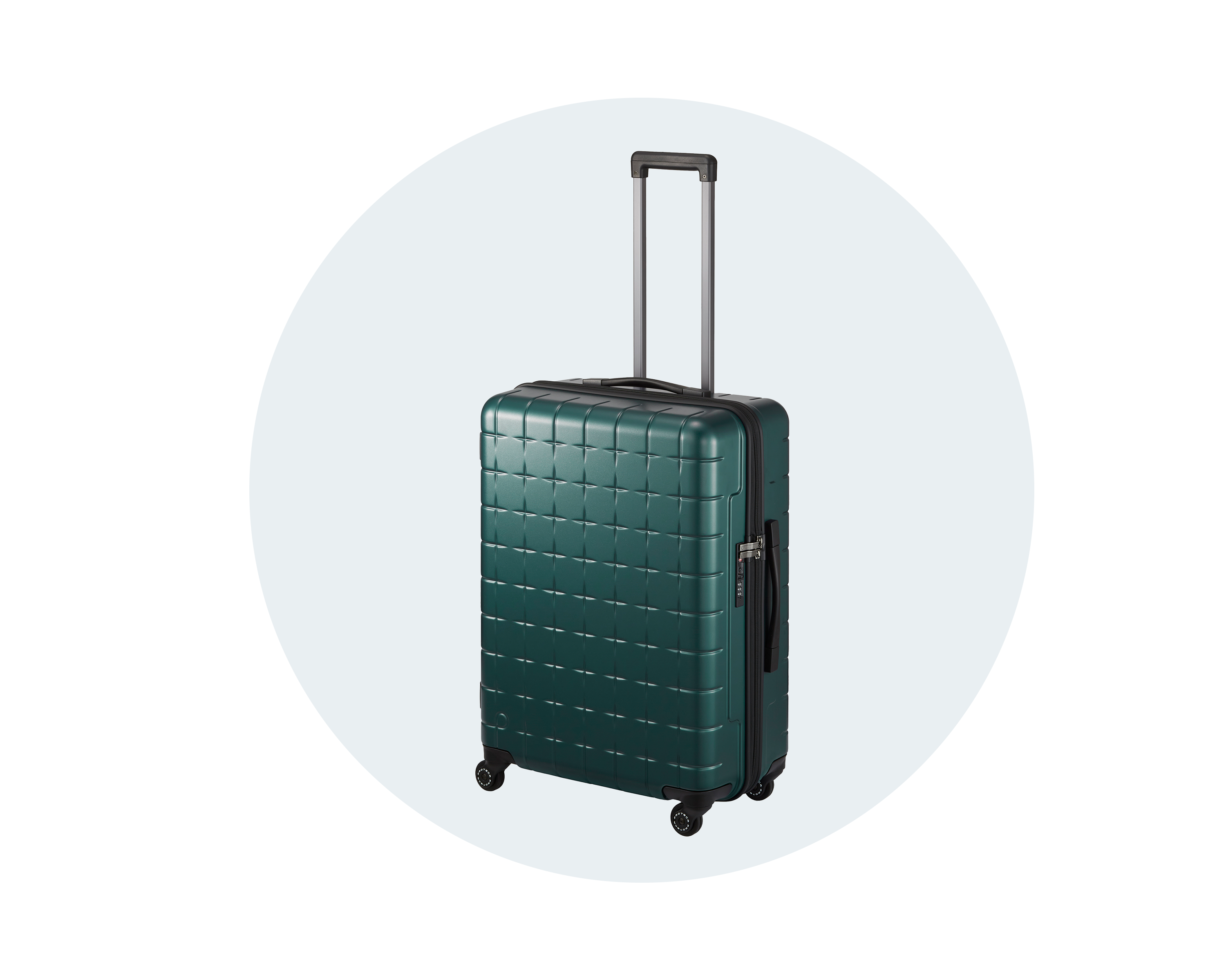 プロテカならではのストッパー機能や静音キャスターはもちろんですが、シリーズ独自の立てたままでも縦にも